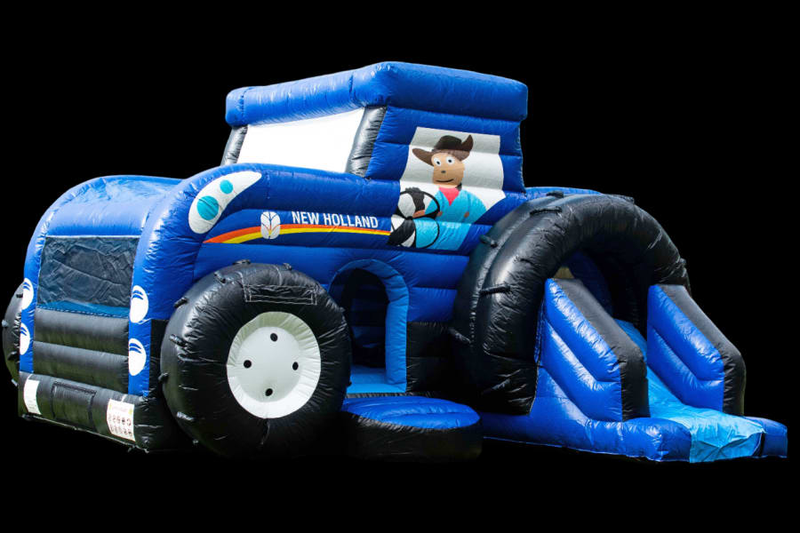 has a slide tunnel and suitable for all a great bouncy castles loved by little boy and girl farmers they all love these bouncing castles,it has a roof to keep out the rain,why not climb into the tunnel and hide on your friends or slide down the bouncy slide and back in the door have a bounce and do it all again,