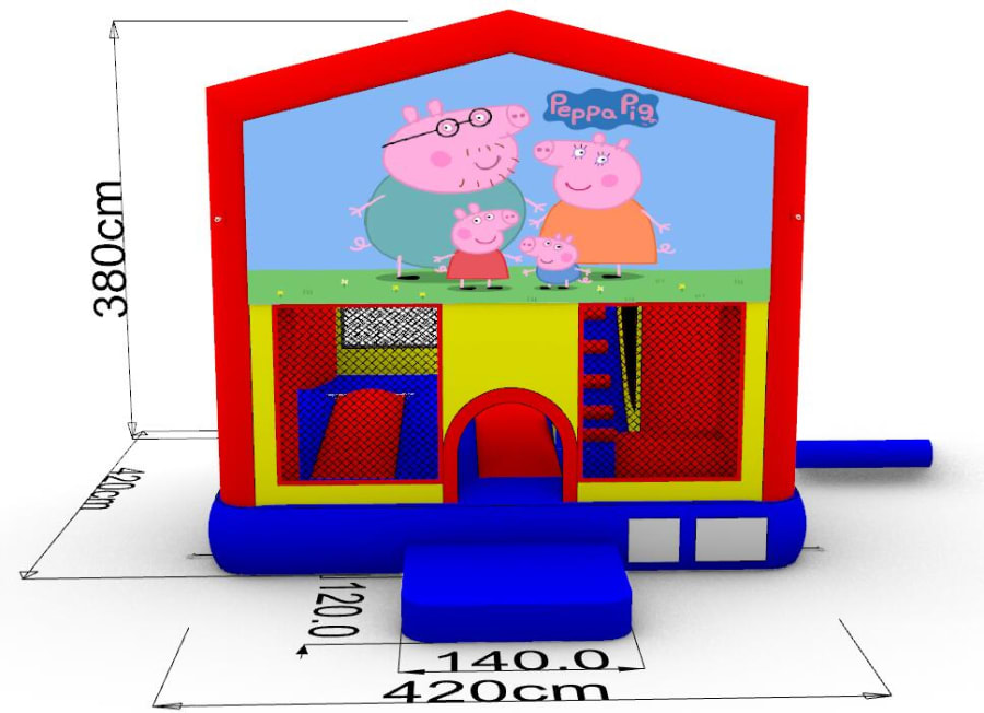 this fab bouncy castle has a great slide why not climb the stairs to the top and slide down ,have a good bounce around bump into your buddies ,or why not have a game of basket ball in this castle there is a basketball hoop, so why not have a few shots its 14x14 or 3.5x3.5m this bouncing castle has a rain cover for those rainy days or very hot days it will keep you sheltered,in this bouncy castle you come in the front but when your in you cant fall out great for those first time bouncers .